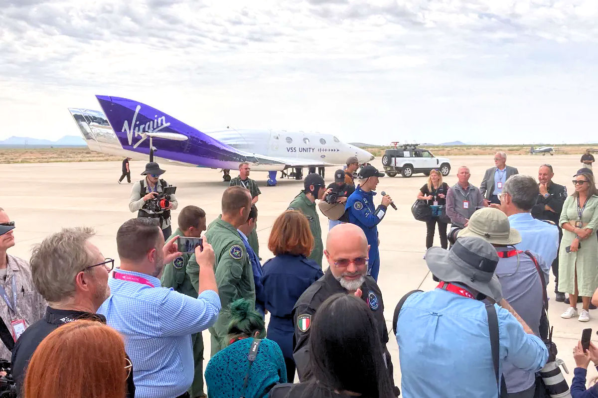 VSS Unity was flown by Mike Masucci, making his fourth spaceflight, along with Nicola Pecile, a former Italian Air Force pilot who now works for Virgin and was on his first spaceflight.